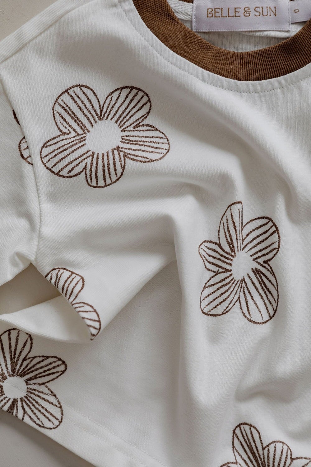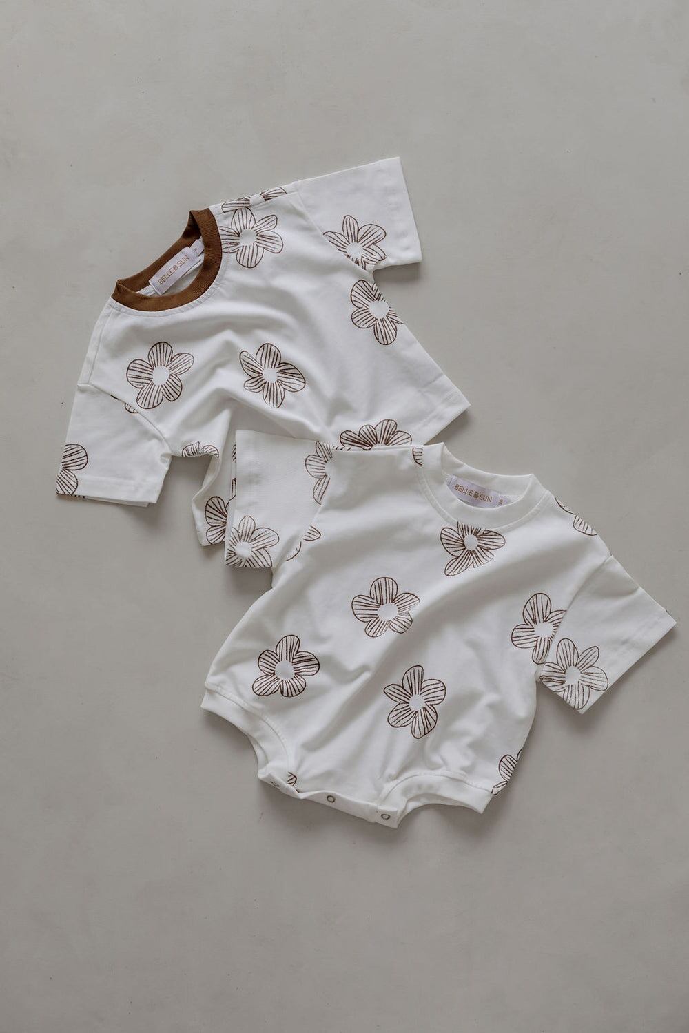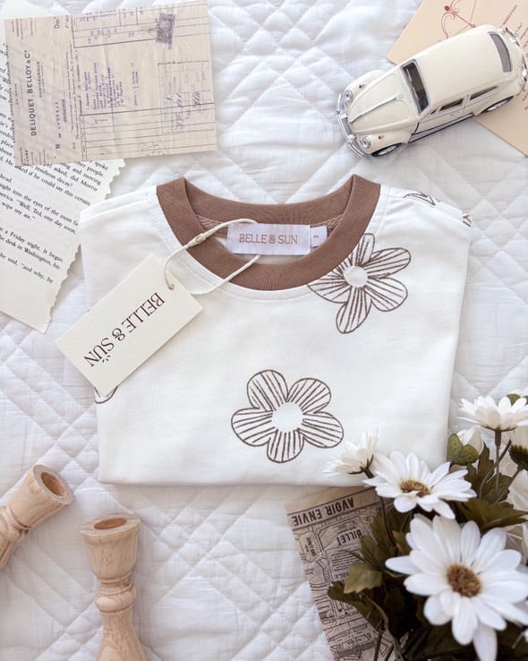 Belle & Sun のフラワー T シャツは、遊び心があり着やすいスタイルで、軽量で風通しが良く、フィット感が高く、スタイリッシュで快適で日常着に着こなせるように設計されています。