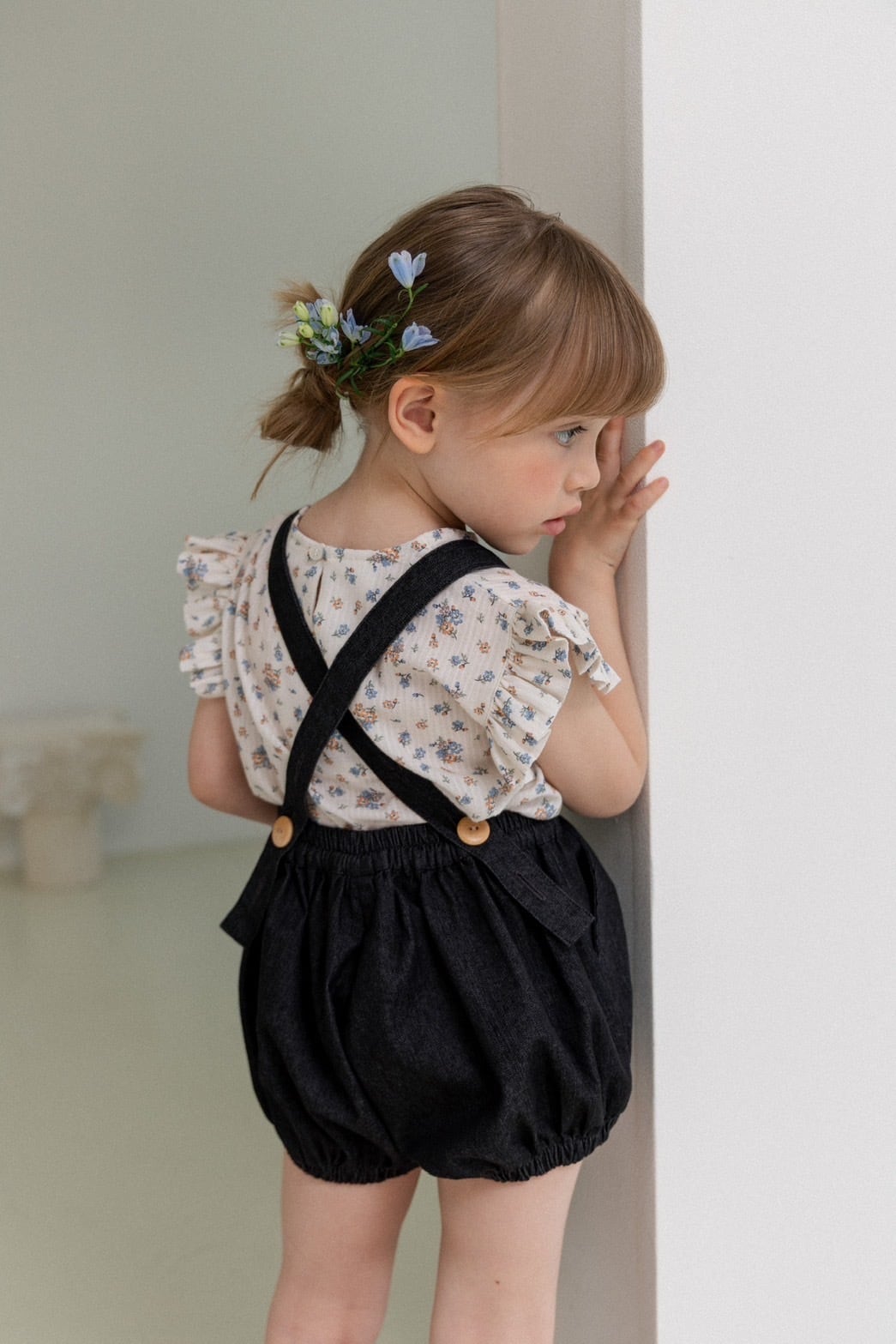 Wonny Ribbon【予約】Black denim rompers (black) 《送料無料))