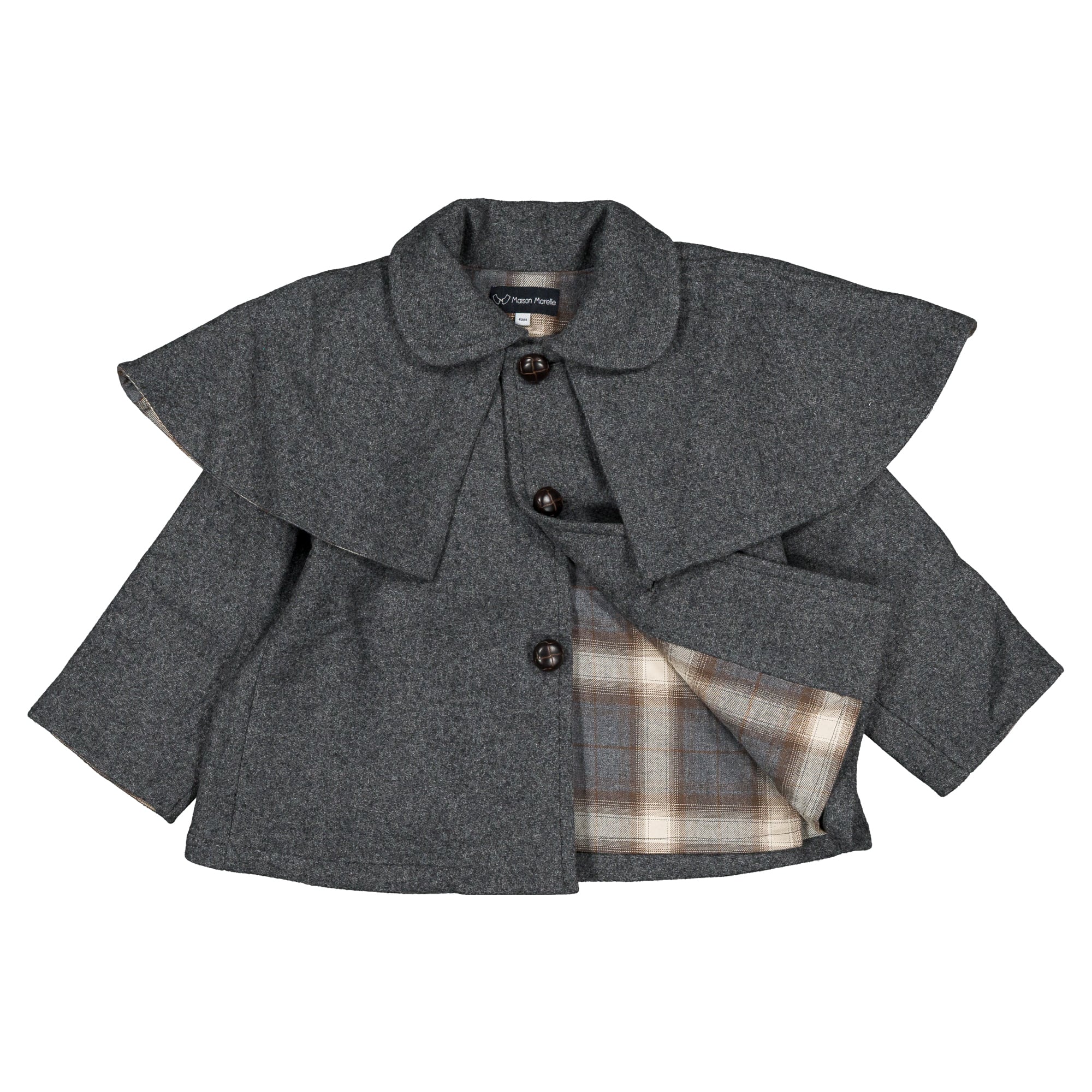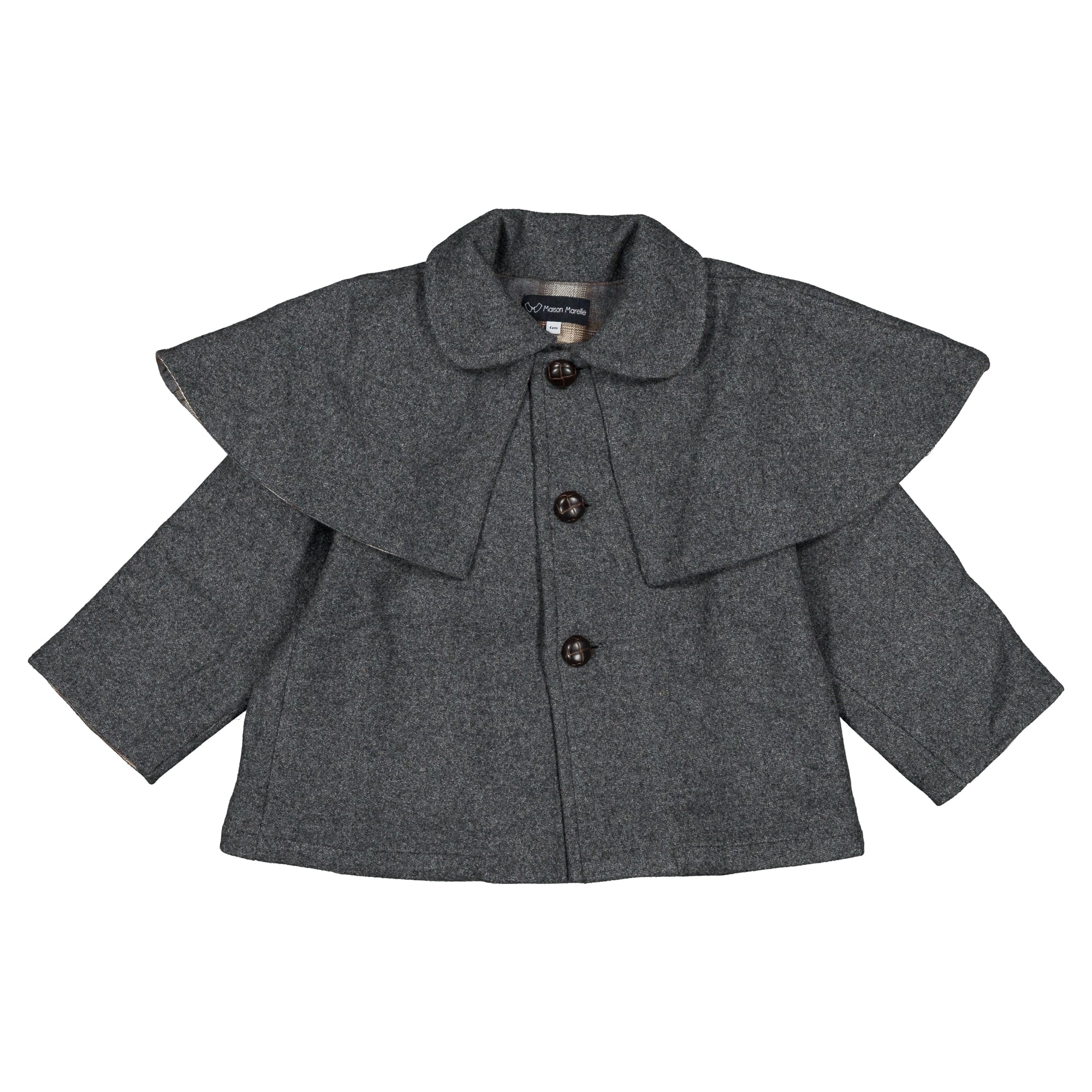 ご予約【MaisonMarelle】送料無料Coat amovible cape SHERLOCK - gray mostly wool18m-4y