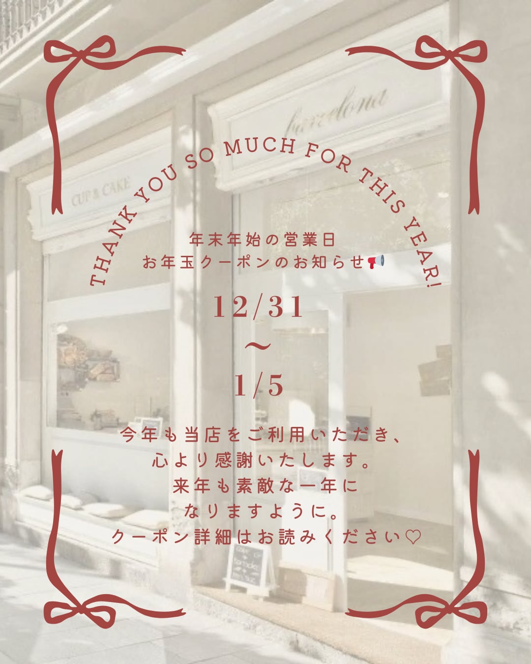 年末年始の営業日とお年玉クーポン配布のお知らせ
