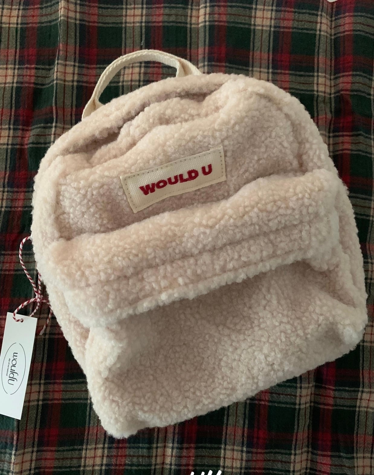 バックパックの生地は、ポグルイ(もこもこしたボア生地)です。