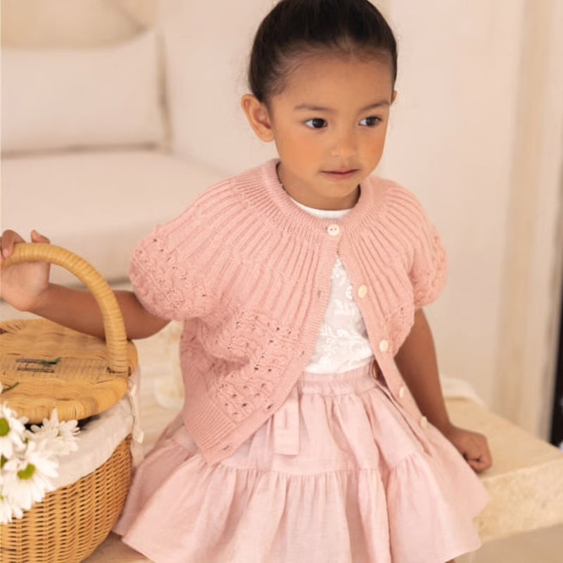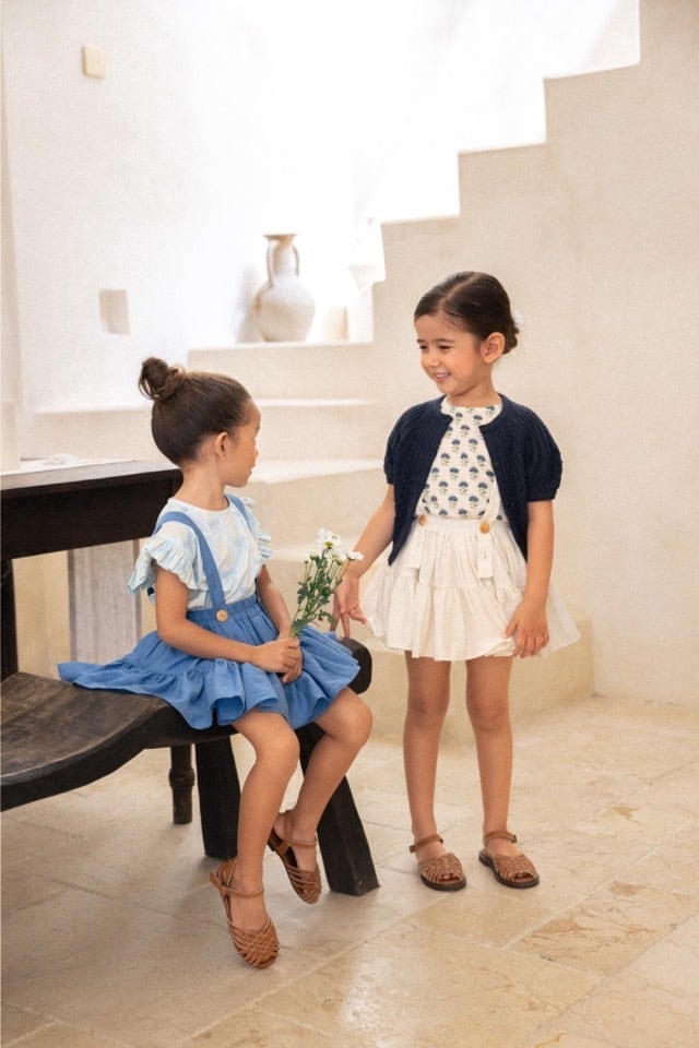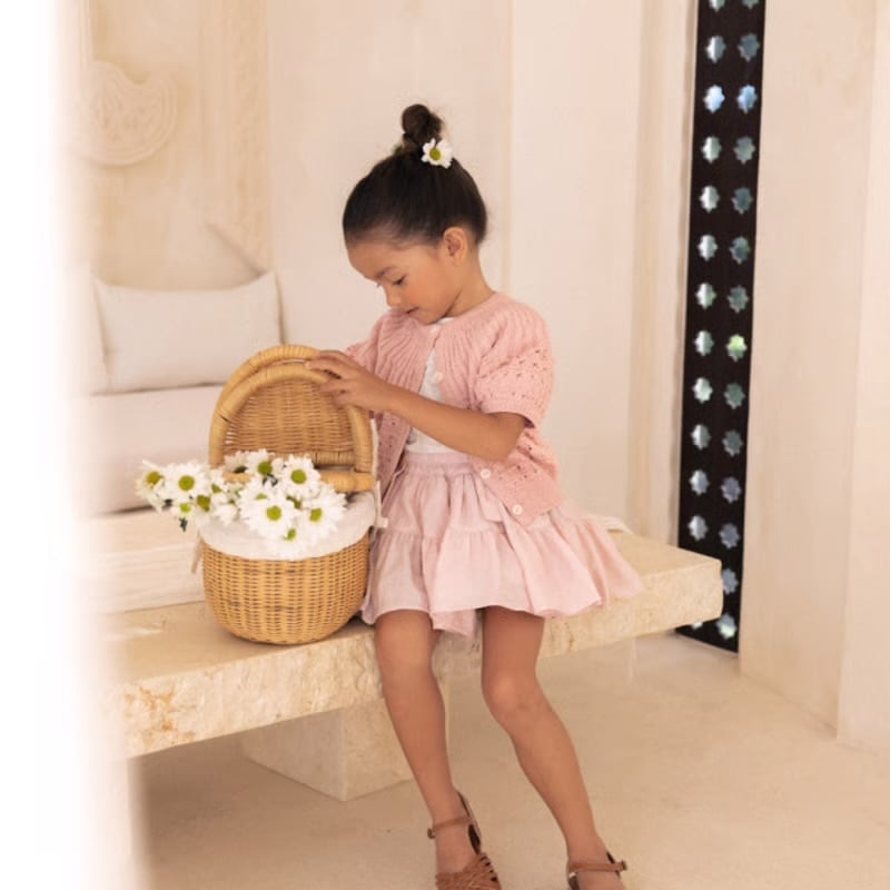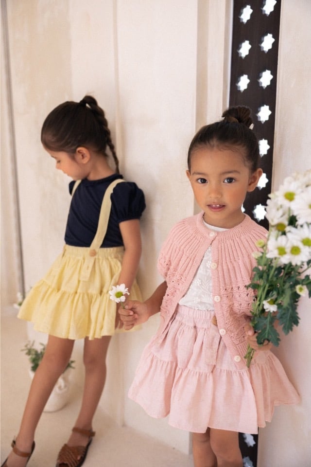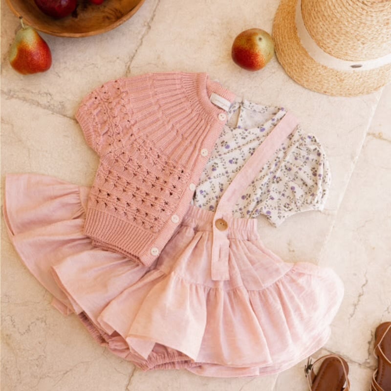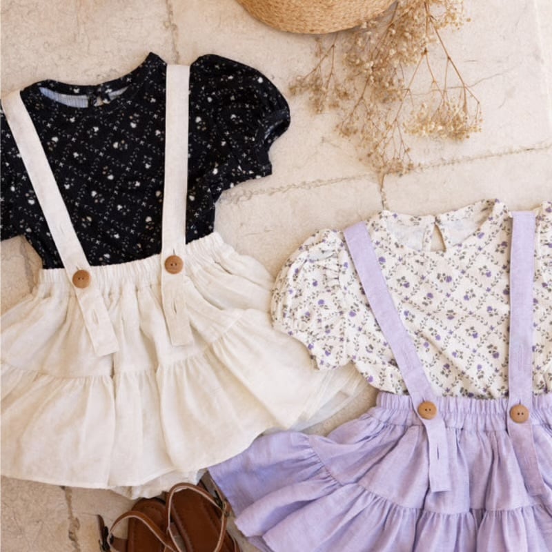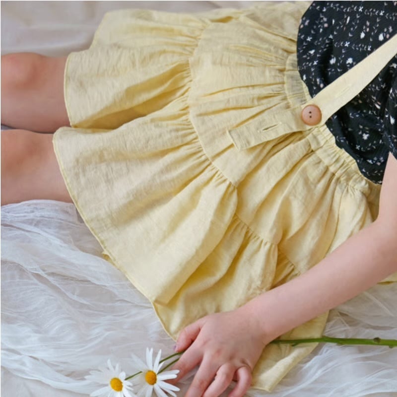 通常ジャストサイズが1番綺麗なシルエットを作ってくれるスカートです。インナーパンツ付きで、小さい子もお姉さんも安心して履けます。