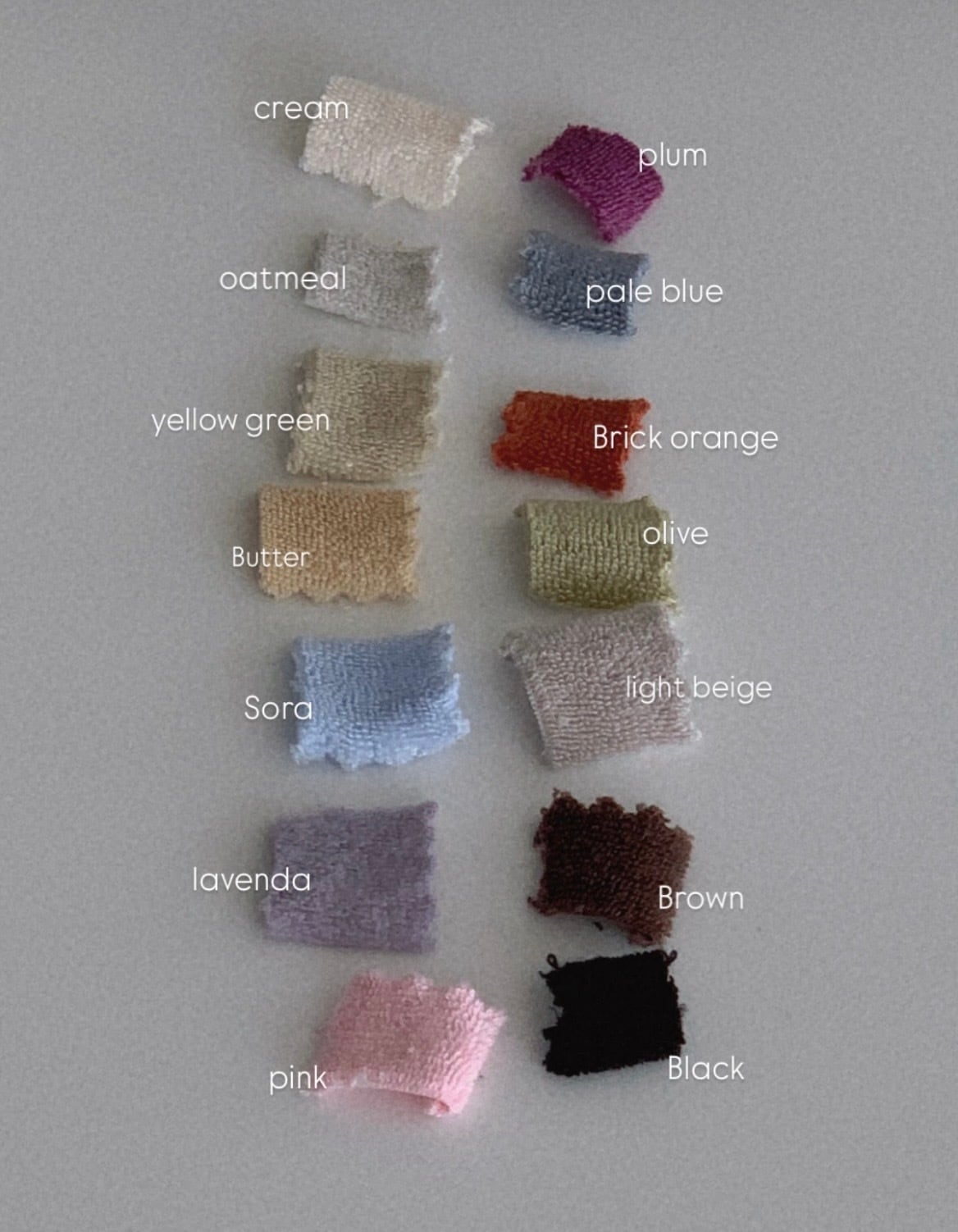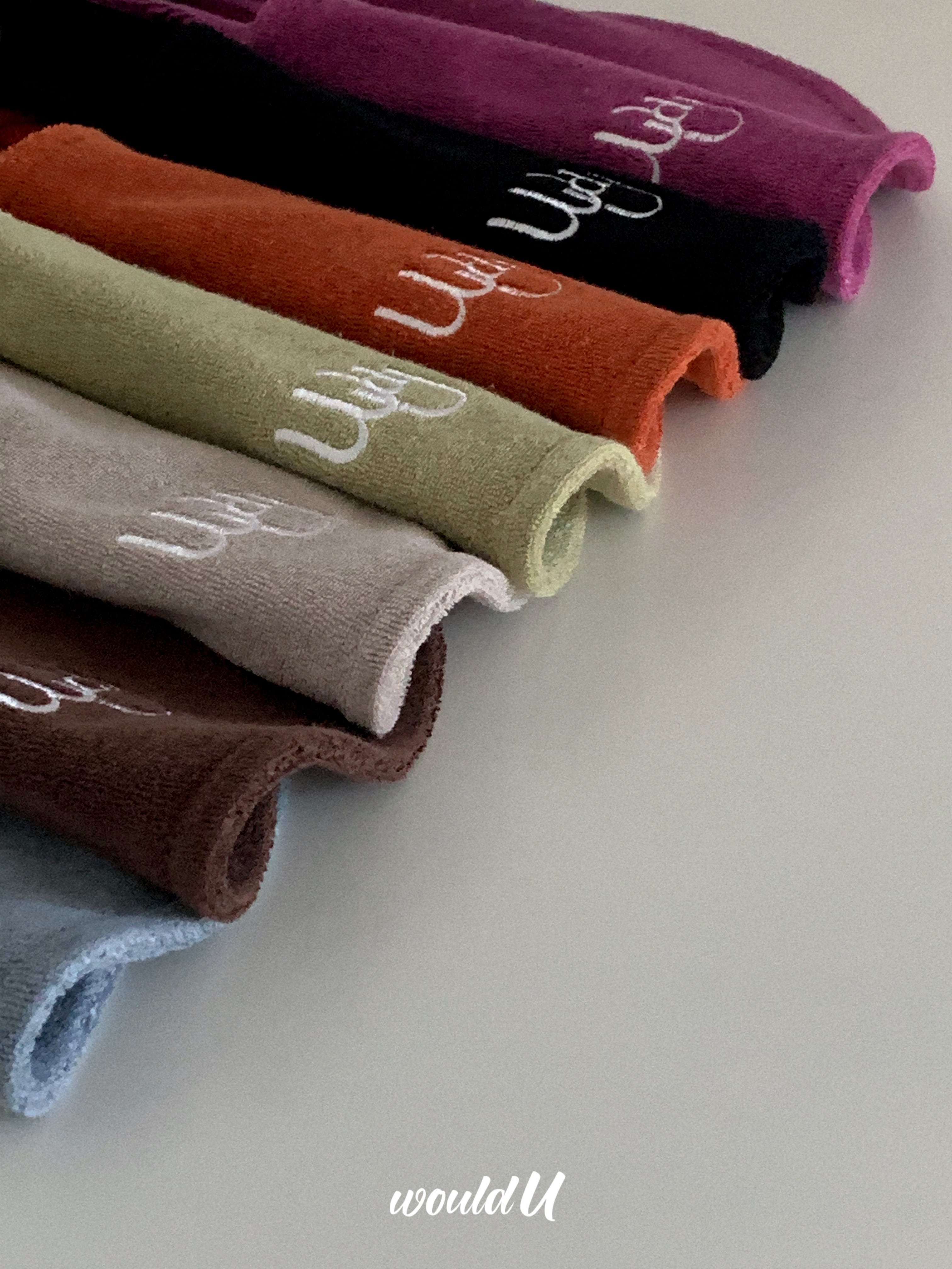 洗濯テストでも端が丸まったり変形したりしなかった「cloud terry bibs」。ロゴとラベル、そしてwould Uならではの色使いで変化をつけた、新しい感性を気に入っていただけると嬉しいです。